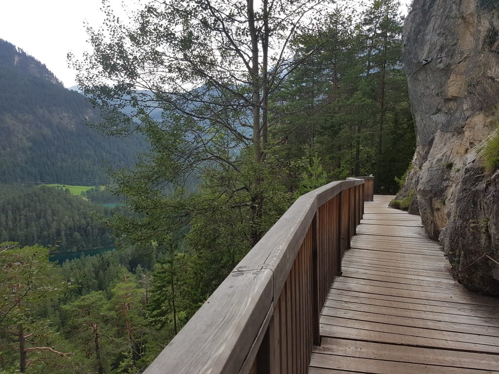 Der Einstieg war denkbar einfach und wir waren uns schon sicher, dass uns die Alpen nur deswegen wie der Turmberg vorkommen, weil wir nach den etlichen Kilometern und Höhenmetern einfach schon richtig gute Beine haben. Dann kam allerdings der erste richtige Anstieg. Wobei Anstieg das vielleicht nicht trifft, nach einer gefühlten Stunde senkrecht nach oben hatte ich wirklich Bedenken, ob ich neben dem Haarspray nicht auch noch Sauerstoffmasken hätte einpacken sollen. Vielleicht auch stattdessen, denn der Schweiß floss in Strömen aus allen Poren. Das hat leider nicht nur die Frisur zerstört, sondern auch das Zeug in die Augen gespült. Die Einheimischen müssen gerührt gewesen sein, wenn sie bei meinem Anblick dachten, mich rührt die tolle Landschaft zu Tränen… Wieder was für meine imaginäre Liste.
