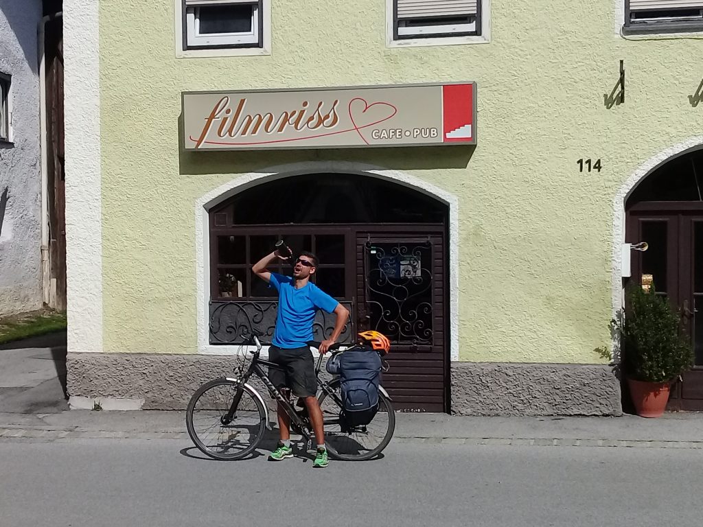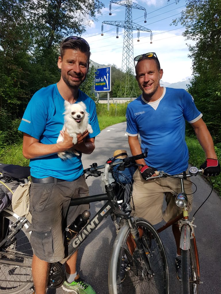 Thomas und ich überholen euch morgen mit dem Wohnwagen – irgendwo am Fernpass. Wir sind die mit den Surfbrettern und den Mountainbikes auf dem Auto.